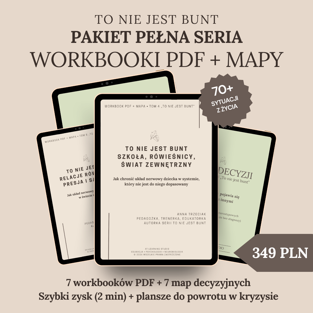 Poniżej masz 7 workbooków serii „To nie jest bunt” — każdy to krótkie lekcje + Mapy Decyzji (10 sytuacji).