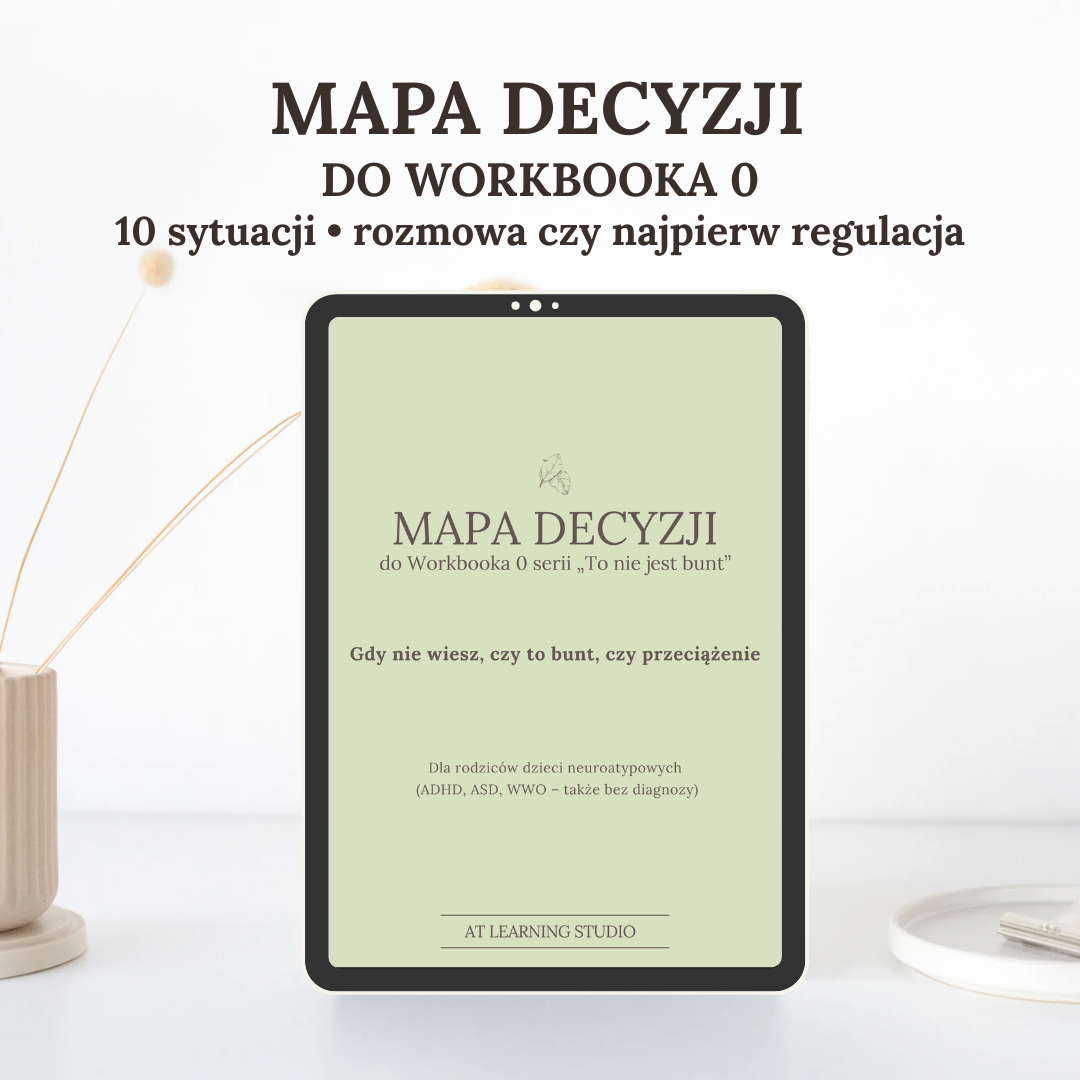 Ten workbook porządkuje momenty, w których najbezpieczniejszą decyzją jest regulacja, nie słowa.